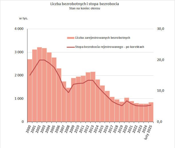Liczba bezrobotnych w województwie opolskim w marcu 2025 roku wyniosła 20 813 osób, a stopa bezrobocia ukształtowała się na poziomie 6,1% (szacunek WUP).